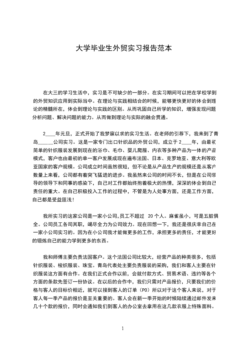 外贸业务员毕业实习报告