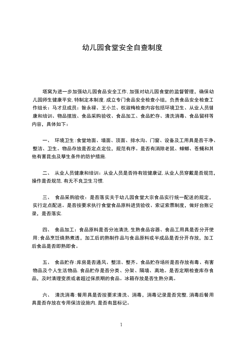 幼儿园对食堂卫生情况进行了一次深入地检查,彻底清除卫生死角,对于各种不卫生的隐患和习惯及时进行处理更新。厨房工作人员认真学习和严格执行食品卫生法等文件的规定,并签订食品饮食卫生责任状。学校加强对食品采购、供货、加工等关口的管理,确保所