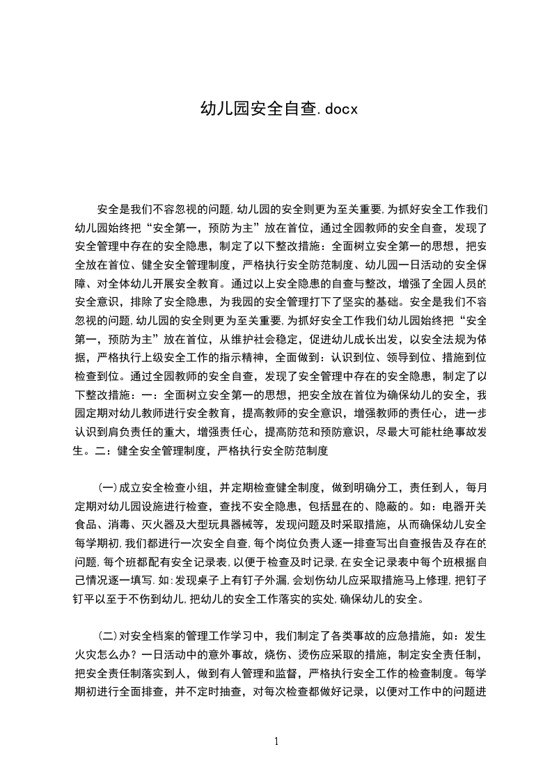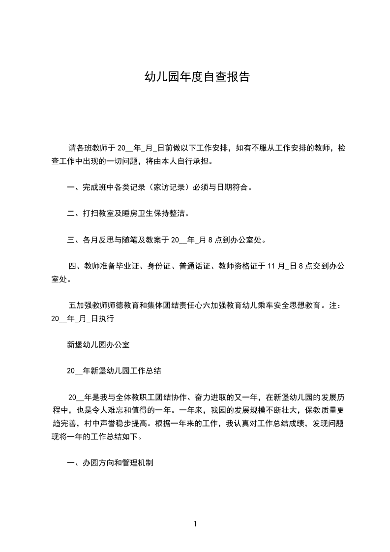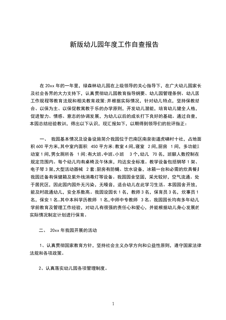 新堡幼儿园年度自查报告