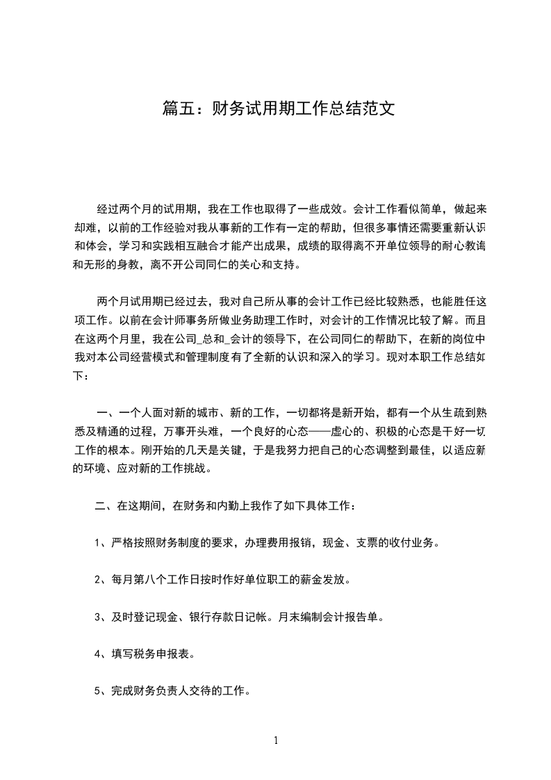 两个月试用期已经过去,我对自己所从事的会计工作已经比较熟悉,也能胜任这项工作。以前在会计师事务所做业务助理工作时,对会计的工作情况比较了解。而且在这两个月里,我在公司_总和_会计的领导下,在公司同仁的帮助下,在新的岗位中,我对本公司经营模式和管理制度有了全新的认识和深入的学习。现对本职工作总结如下: