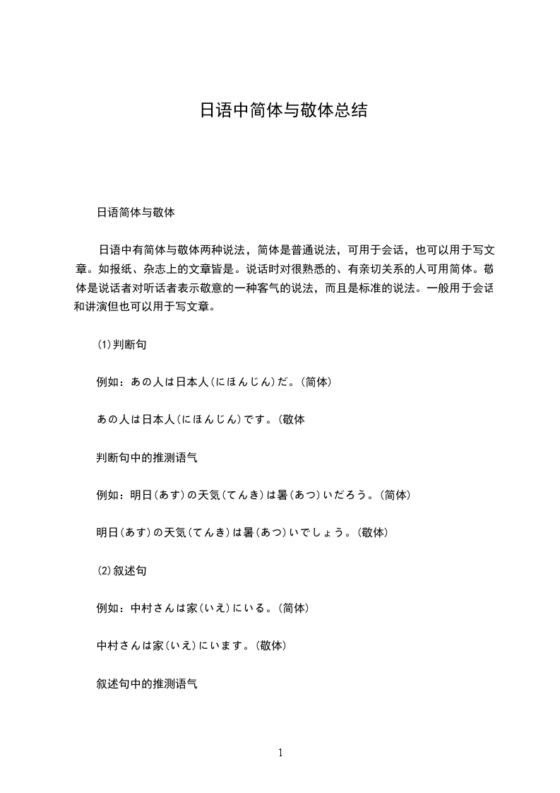 日语中有简体与敬体两种说法,简体是普通说法,可用于会话,也可以用于写文章。如报纸、杂志上的文章皆是。说话时对很熟悉的、有亲切关系的人可用简体。敬体是说话者对听话者表示敬意的一种客气的说法,而且是标准的说法。一般用于会话和讲演但也可以用于写文章。