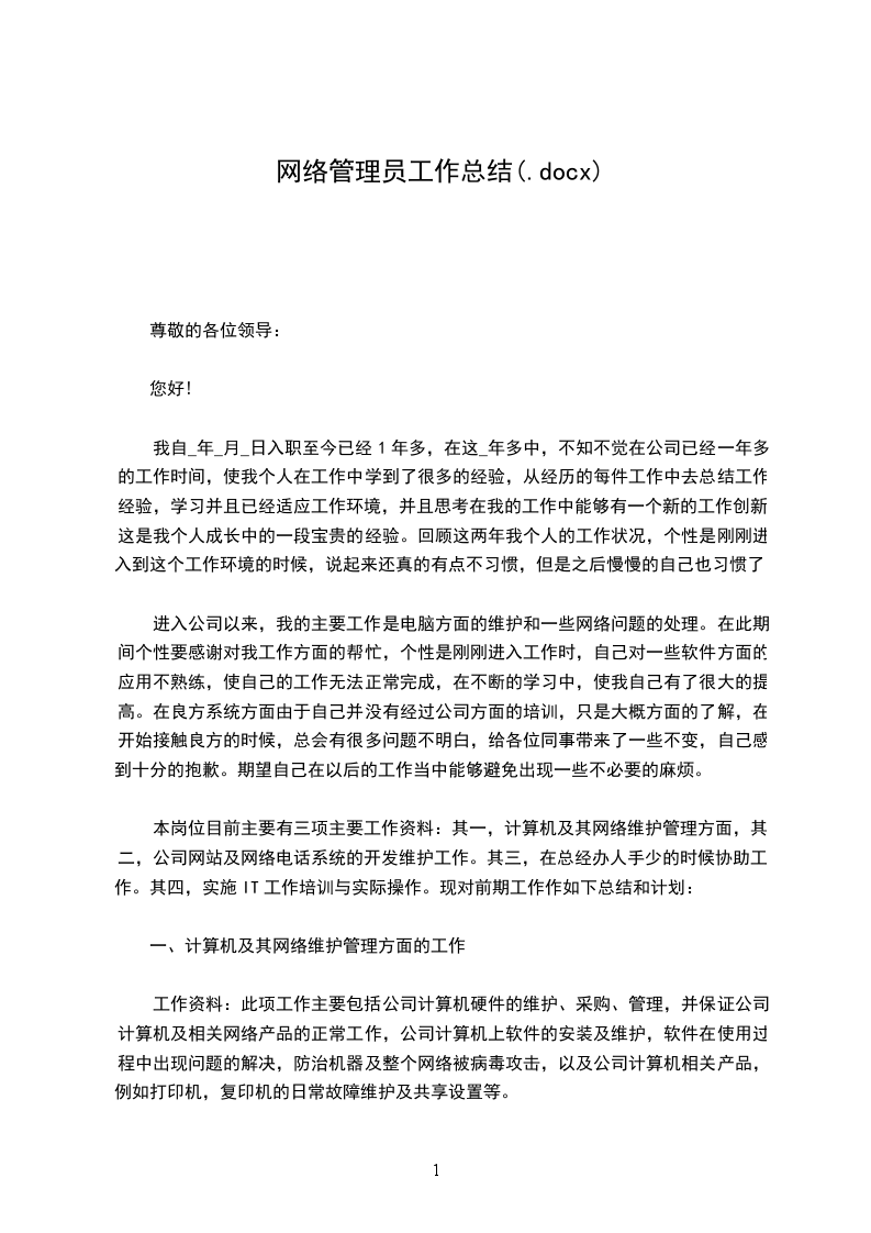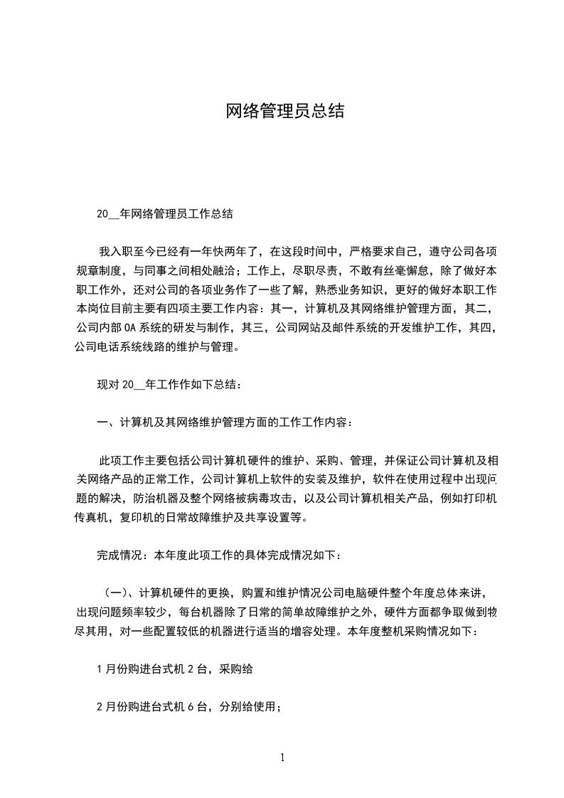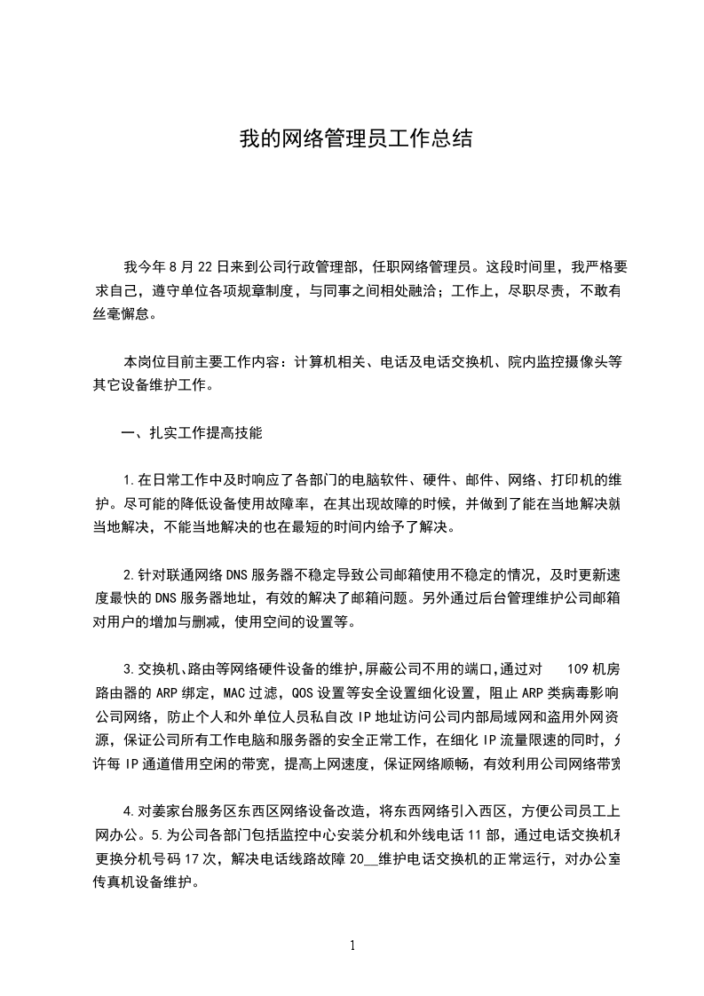 以上是我在网络管理员岗位上20__年度工作总结及20__年工作计划。相信新的一年一定会有新的成就,同时在新的一年里感谢公司对我的信任与支持。