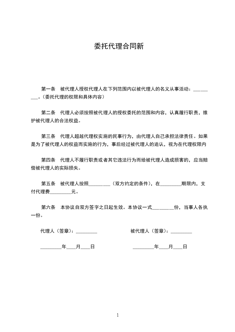 第一条 被代理人授权代理人在下列范围内以被代理人的名义从事活动:_________。(委托代理的权限和具体内容)