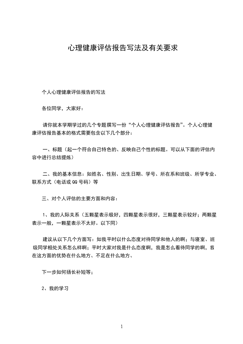 个人心理健康评估报告的写法