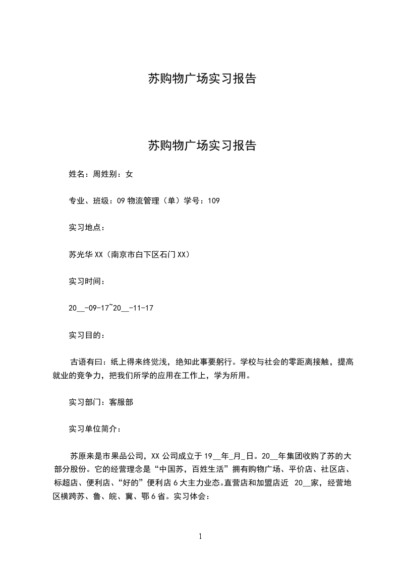 苏购物广场实习报告