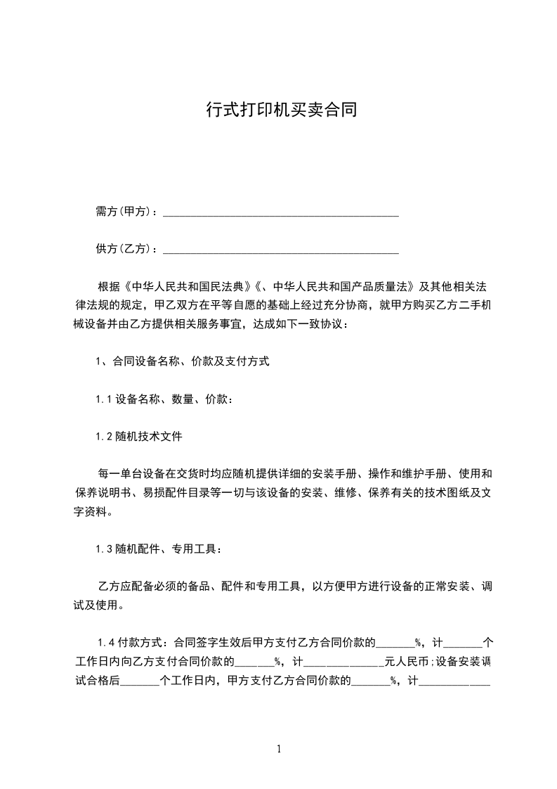行式打印机买卖合同