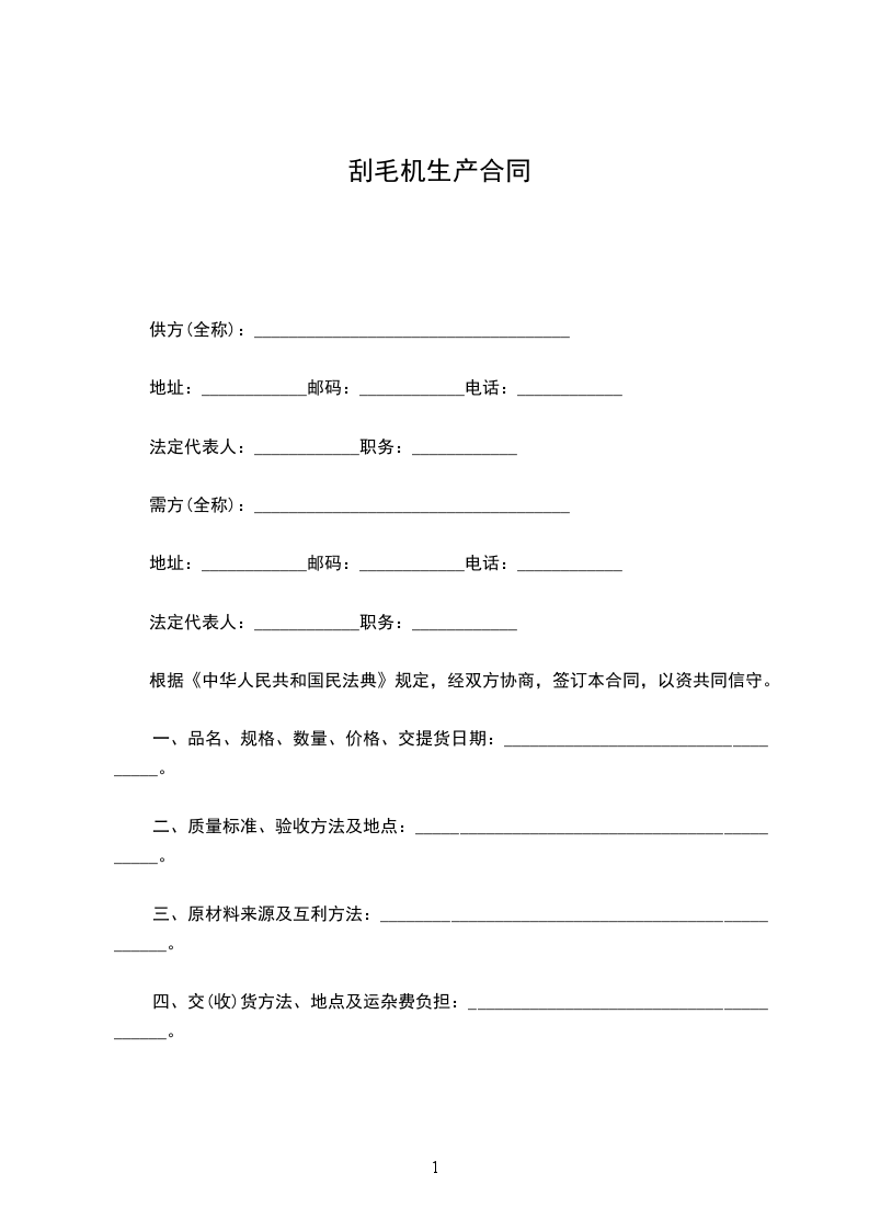 甲方因生产需要购买乙方“_________________”。经甲乙双方协商,按照“诚实信用,平等自愿,质量第一”的原则,共同制定以下合同: