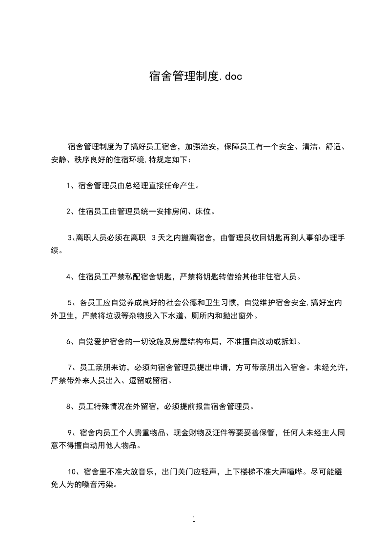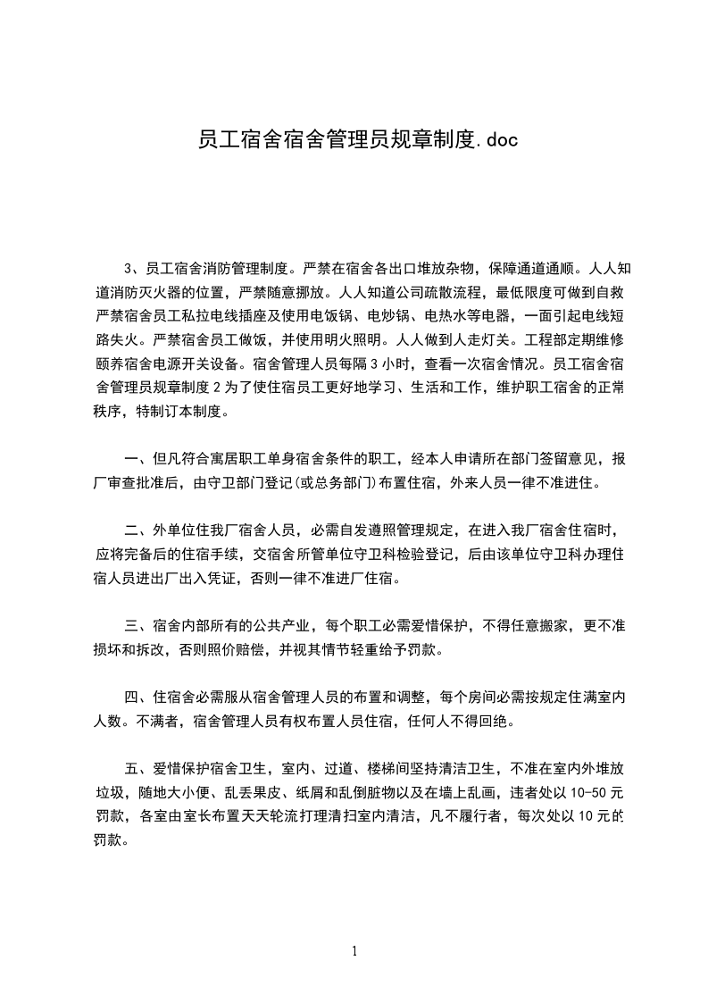 3.1员工宿舍:宿舍卫生全部由保洁员负责打扫清理,从保洁员执行之日起平均核算管理费。