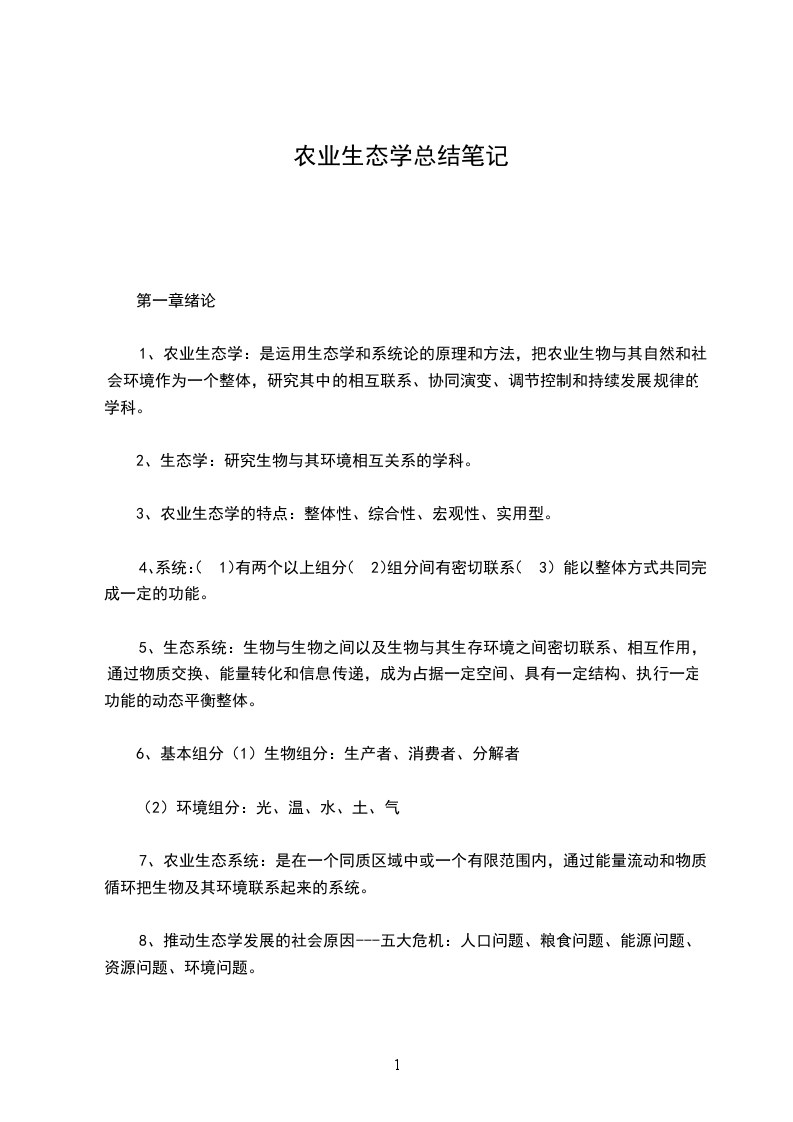 1、农业生态学:是运用生态学和系统论的原理和方法,把农业生物与其自然和社会环境作为一个整体,研究其中的相互联系、协同演变、调节控制和持续发展规律的学科。