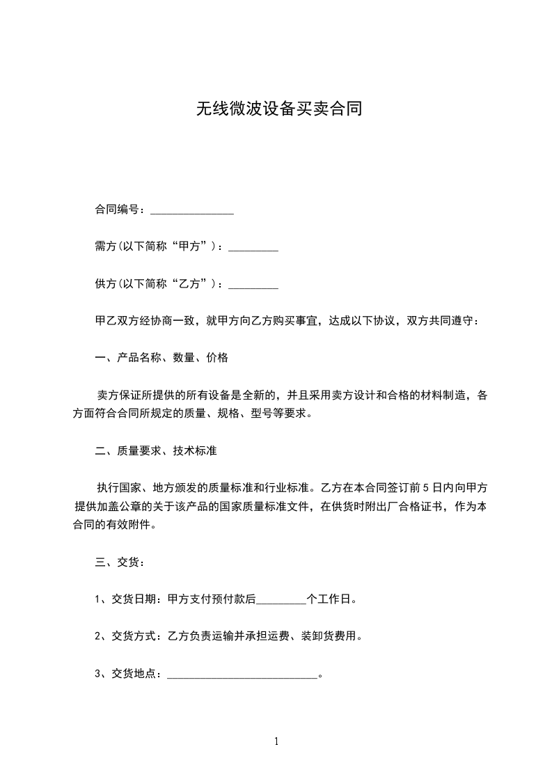 1、设备自安装、调试合格之日起保质期_________年。