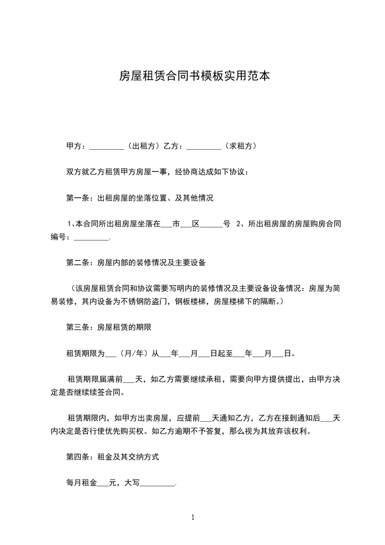 四、该房屋租赁期自________年____月____日至________年____月____日止。租赁期满若甲方继续出租,同等条件下乙方享有优先续租权;租赁期间,甲方有权按法定程序转让该出租的房屋,转让后本合同对新的房屋所有人和乙方继续有效;甲方出售房屋,须在__个月前书面通知乙方,同等条件下乙方享有优先购买权。如租赁期满乙方不在续租,则乙方应如期将房屋归还甲方并结清相关费用。本合同终止时,甲方应对室内设施进行清点,如有短缺,则可据实自行向乙方索赔。