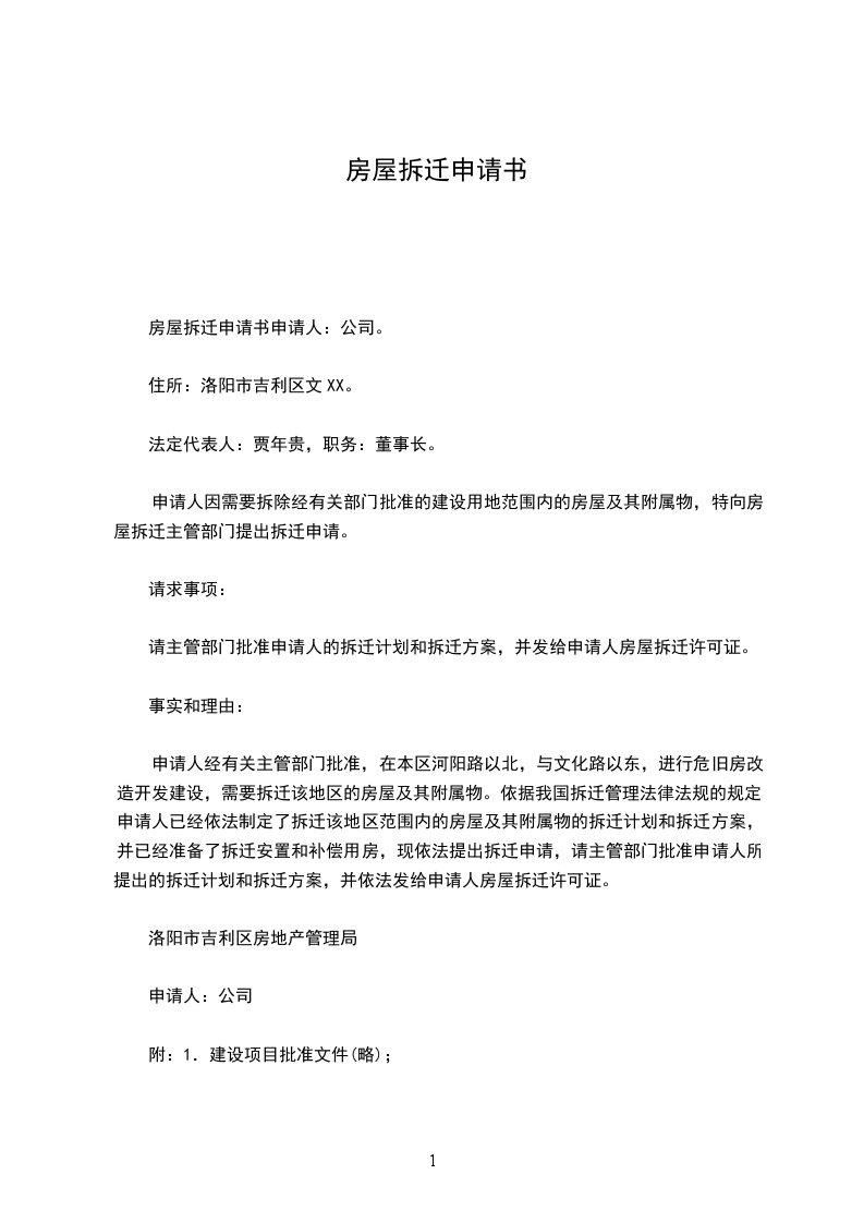 申请人经有关主管部门批准,在本区河阳路以北,与文化路以东,进行危旧房改造开发建设,需要拆迁该地区的房屋及其附属物。依据我国拆迁管理法律法规的规定,申请人已经依法制定了拆迁该地区范围内的房屋及其附属物的拆迁计划和拆迁方案,并已经准备了拆迁安置和补偿用房,现依法提出拆迁申请,请主管部门批准申请人所提出的拆迁计划和拆迁方案,并依法发给申请人房屋拆迁许可证。