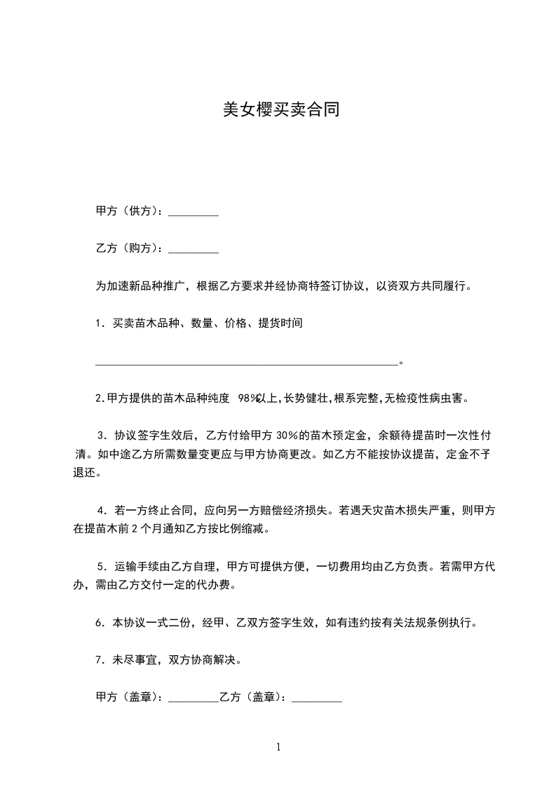 4.若一方终止合同,应向另一方赔偿经济损失。若遇天灾苗木损失严重,则甲方在提苗木前2个月通知乙方按比例缩减。