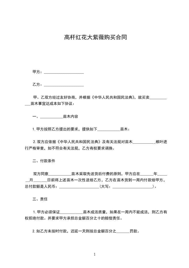 甲、乙双方经过友好协商,并根据《中华人民共和国民法典》,就买卖____________苗木事宜达成本如下协议: