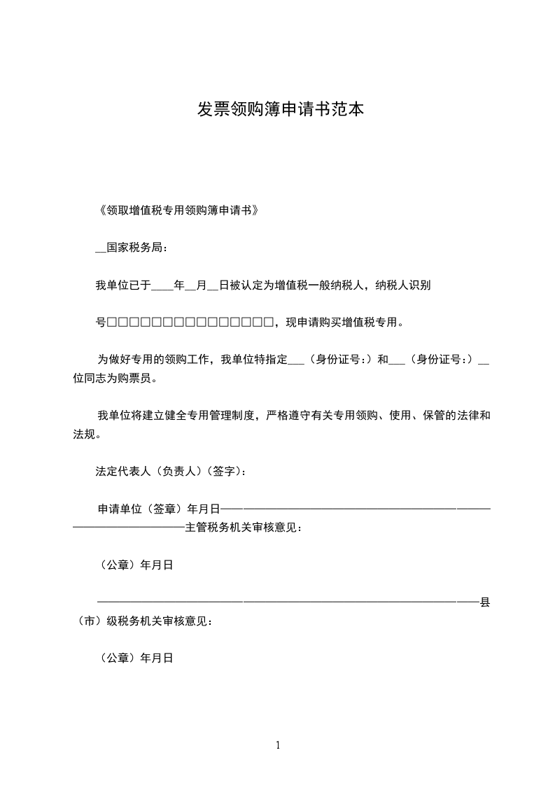 《领取增值税专用领购簿申请书》