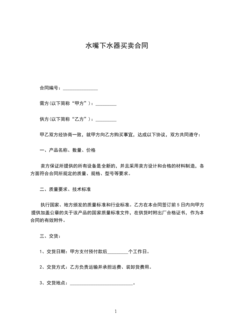 1、设备自安装、调试合格之日起保质期_________年。