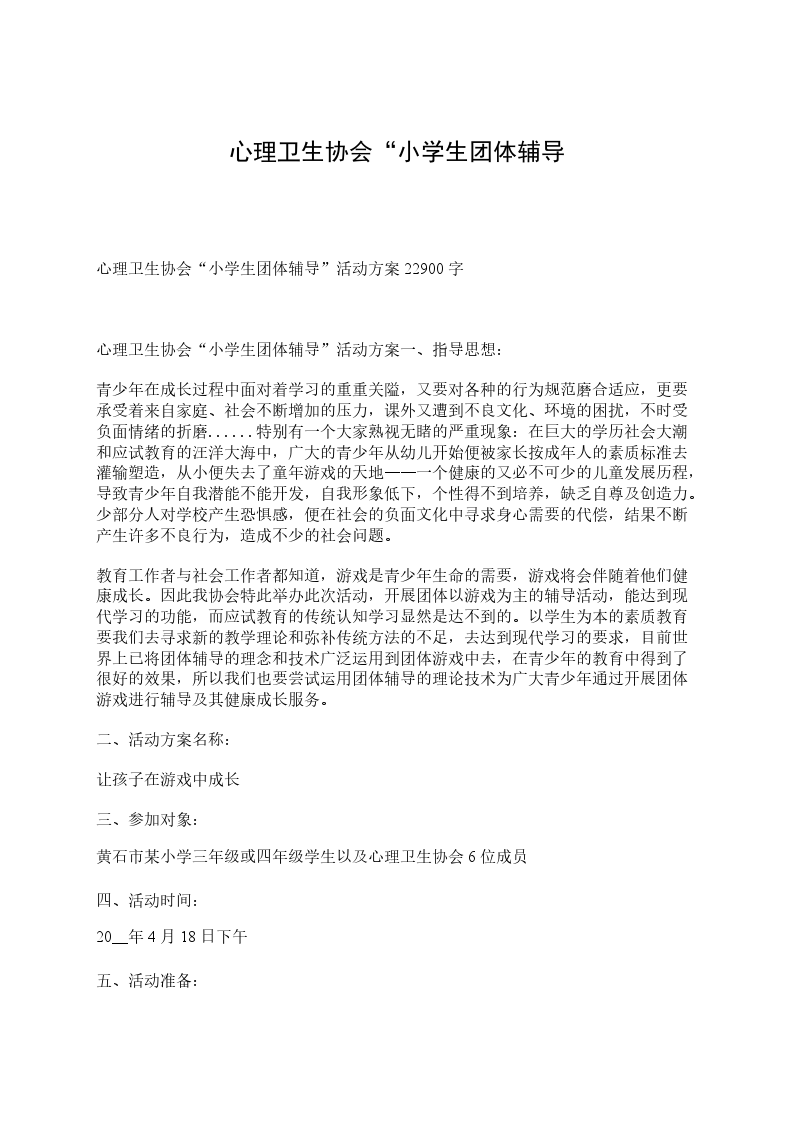心理卫生协会“小学生团体辅导”活动方案一、指导思想:
