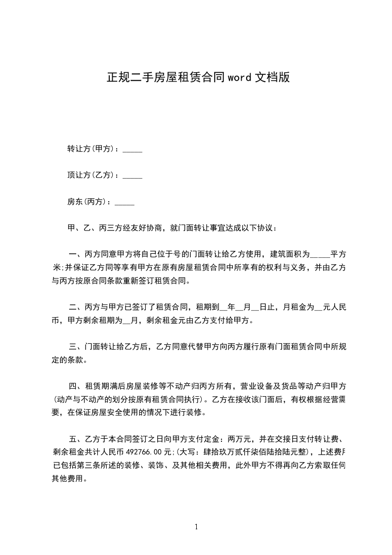 四、租房押金:乙方应于签约同时付给甲方押金__________元,到期结算,多余归还。