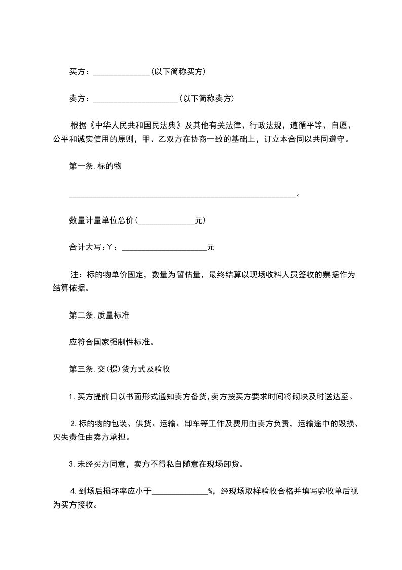4.到场后损坏率应小于______________%,经现场取样验收合格并填写验收单后视为买方接收。
