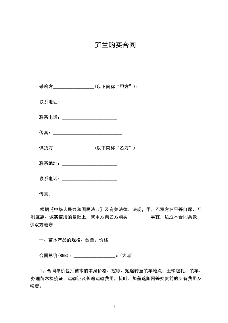 笋兰购买合同