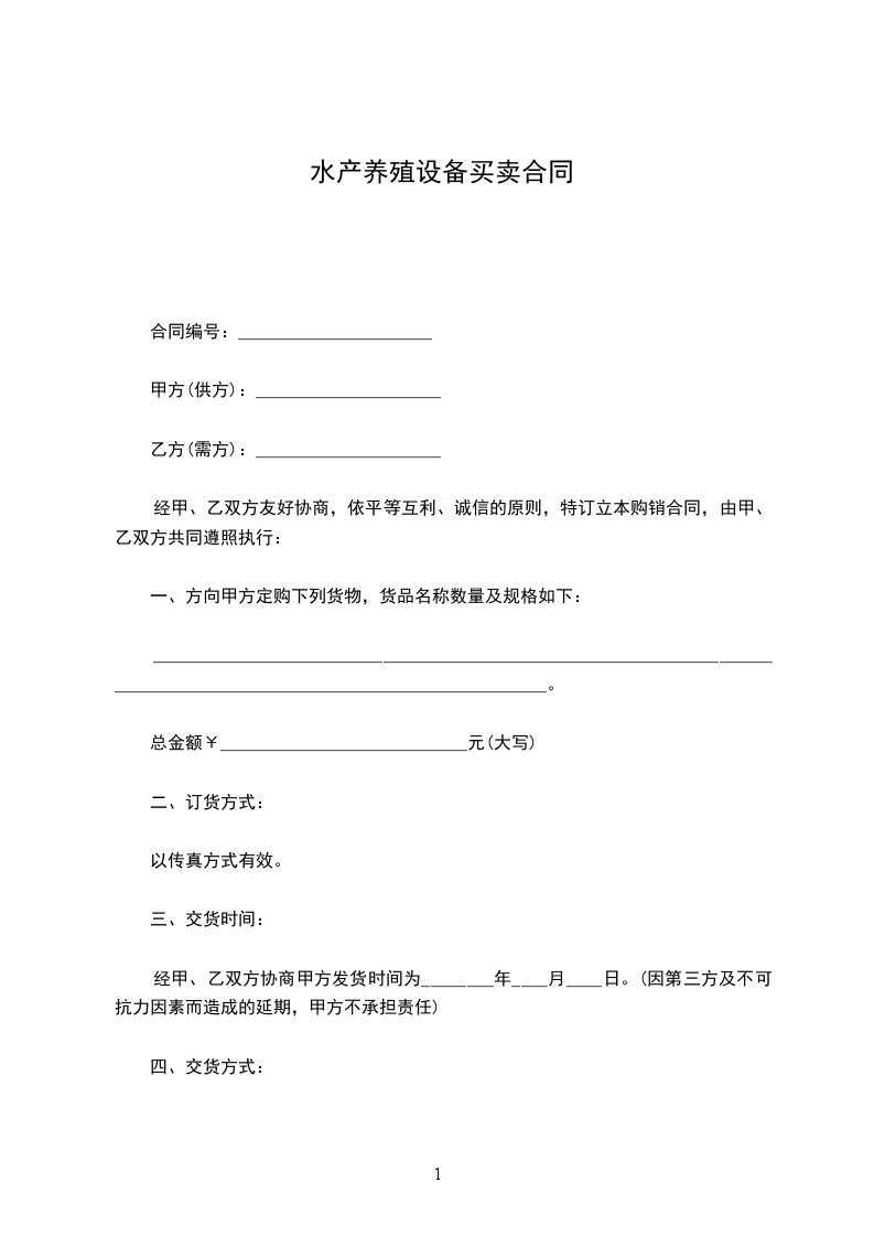 水产养殖设备买卖合同