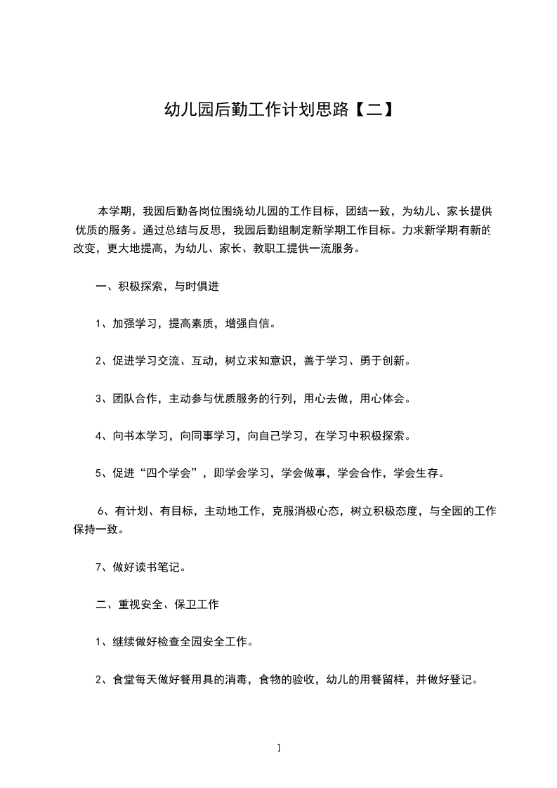 本学期,我园后勤各岗位围绕幼儿园的工作目标,团结一致,为幼儿、家长提供优质的服务。通过总结与反思,我园后勤组制定新学期工作目标。力求新学期有新的改变,更大地提高,为幼儿、家长、教职工提供一流服务。