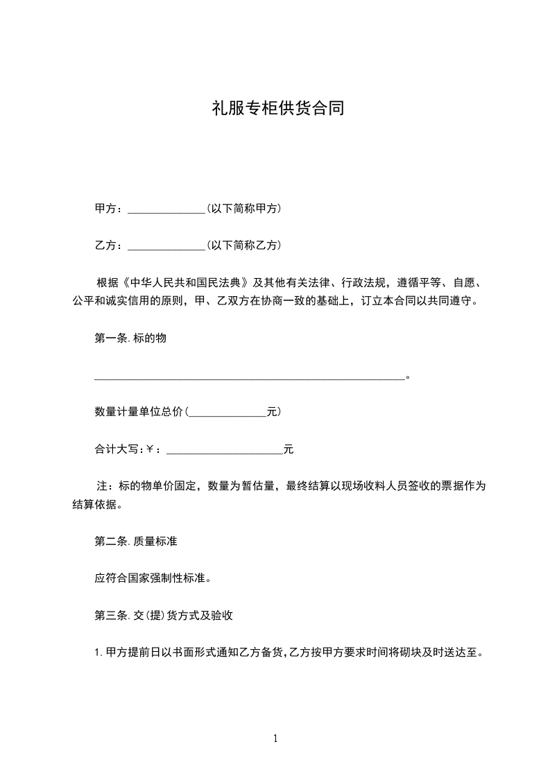 注:标的物单价固定,数量为暂估量,最终结算以现场收料人员签收的票据作为结算依据。
