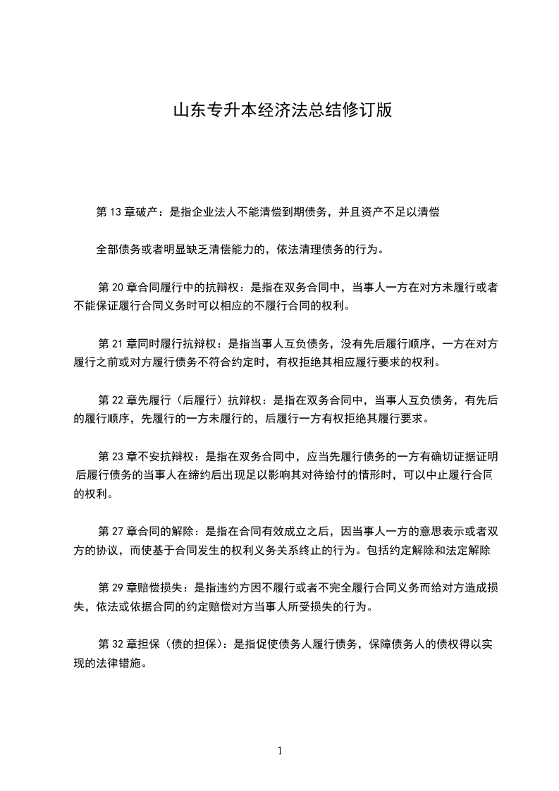 第20章合同履行中的抗辩权:是指在双务合同中,当事人一方在对方未履行或者不能保证履行合同义务时可以相应的不履行合同的权利。
