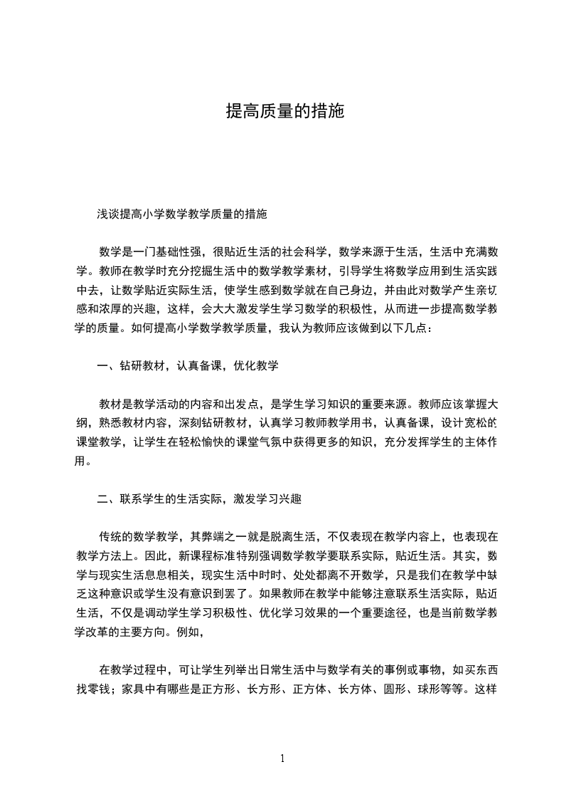 浅谈提高小学数学教学质量的措施