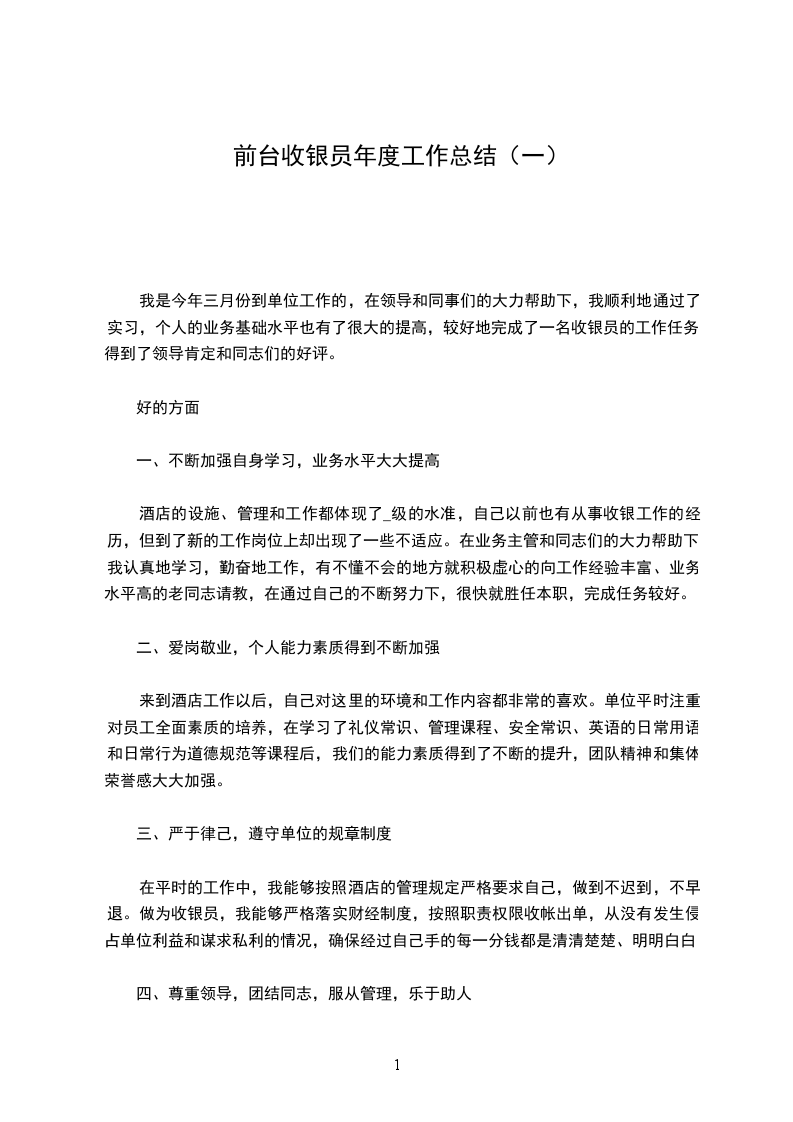 在平时的工作中,我能够按照酒店的管理规定严格要求自己,做到不迟到,不早退。做为收银员,我能够严格落实财经制度,按照职责权限收帐出单,从没有发生侵占单位利益和谋求私利的情况,确保经过自己手的每一分钱都是清清楚楚、明明白白。
