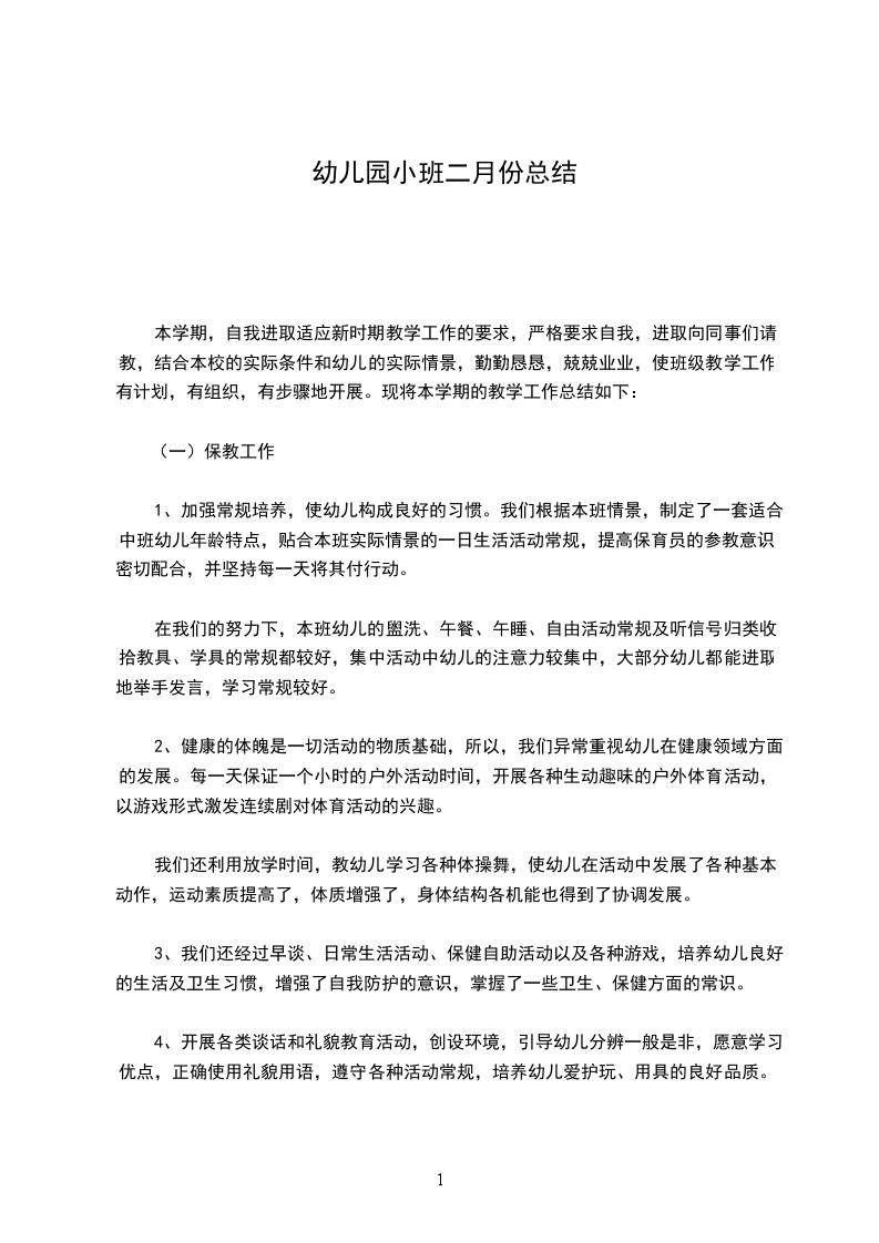 时光飞逝,日月如梭,转眼间,忙碌而又充实的二月过去了,我在幼儿园已工作了_年半,从我踏入幼儿园一路走到今天,努力与共同工作的同事建立了良好的关系。在工作中,让我更深地了解到互相合作,互相配合在幼儿园工作中是非常重要的。其实每一个人身上都有她的闪光点,可以取他人之长,补自己之短,都是可以虚心学习的榜样。本学期我认真做好各项工作,积极完成幼儿园、班级布置的各项任务。下面我把二月的工作做一个总结: