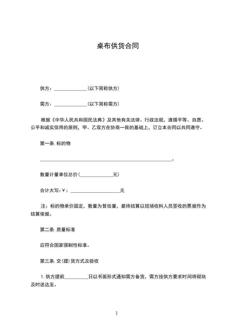 注:标的物单价固定,数量为暂估量,最终结算以现场收料人员签收的票据作为结算依据。