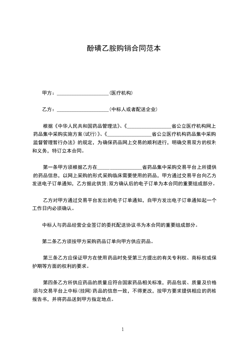 (一)甲方保证通过_______________省医院招标采购网从乙方采购双方协商约定的药品采购目录内的全部药品,非经乙方同意,不得从其他公司采购。