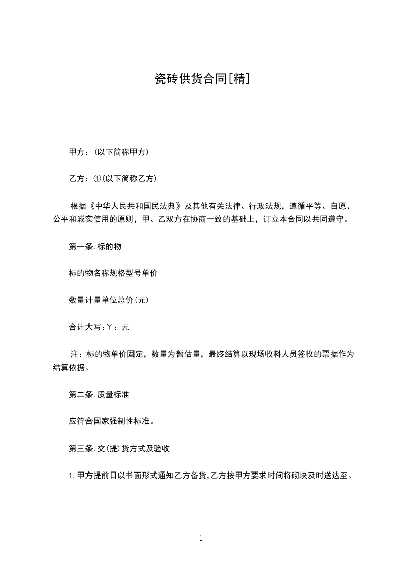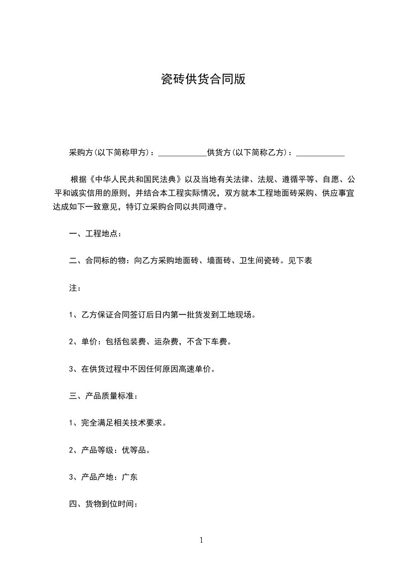 1.供方提前__________日以书面形式通知需方备货,需方按供方要求时间将砌块及时送达至。