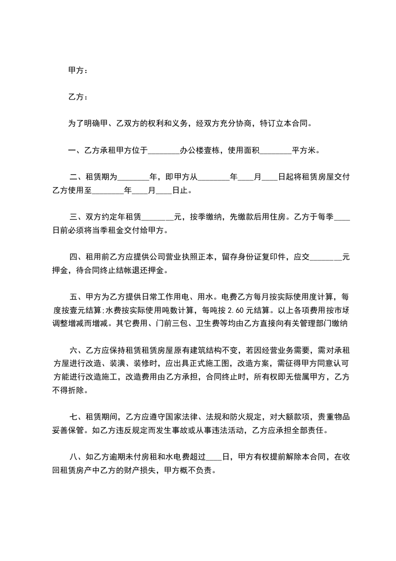 本合同自双方签字、盖章之日起生效。有效期自____年__月__日至____年__月__日为止。期满前三十天,如任何一方不提出异议,合同将自动延长一年。