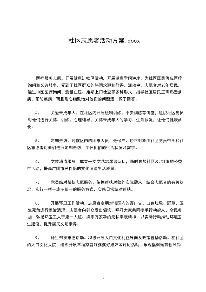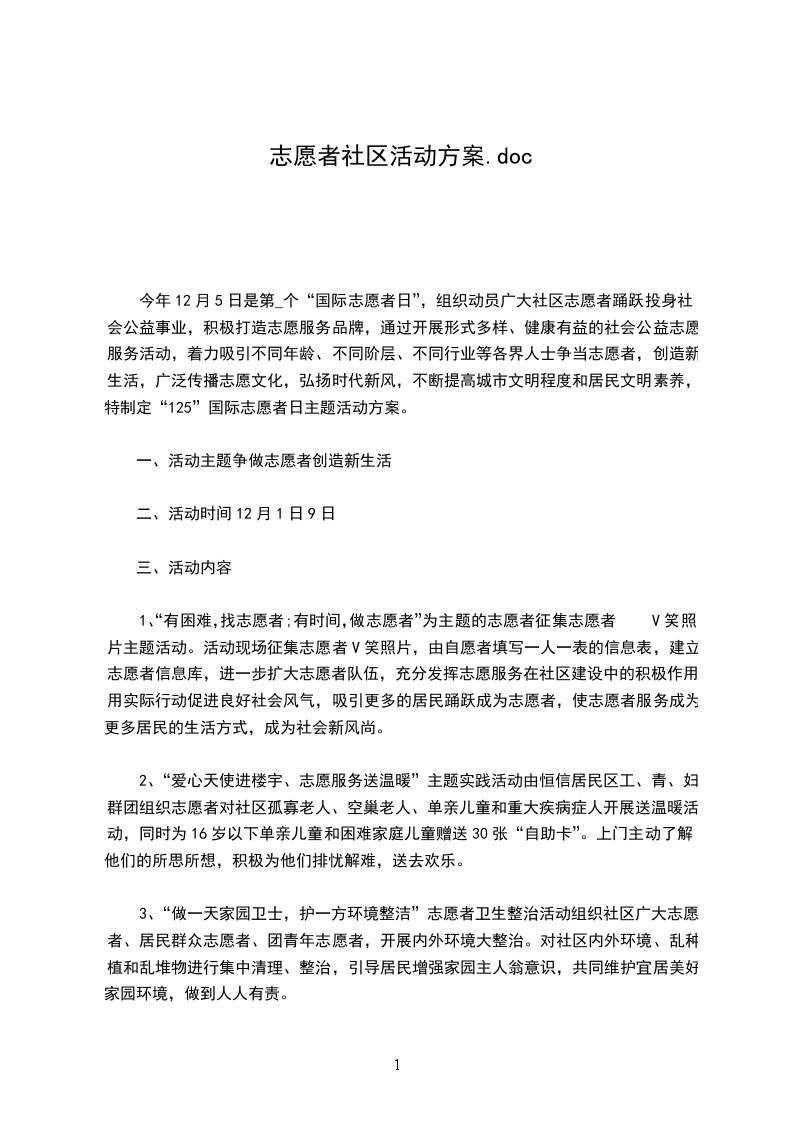 六、社区对孤、老、残、弱的志愿活动每月应不少于1次。