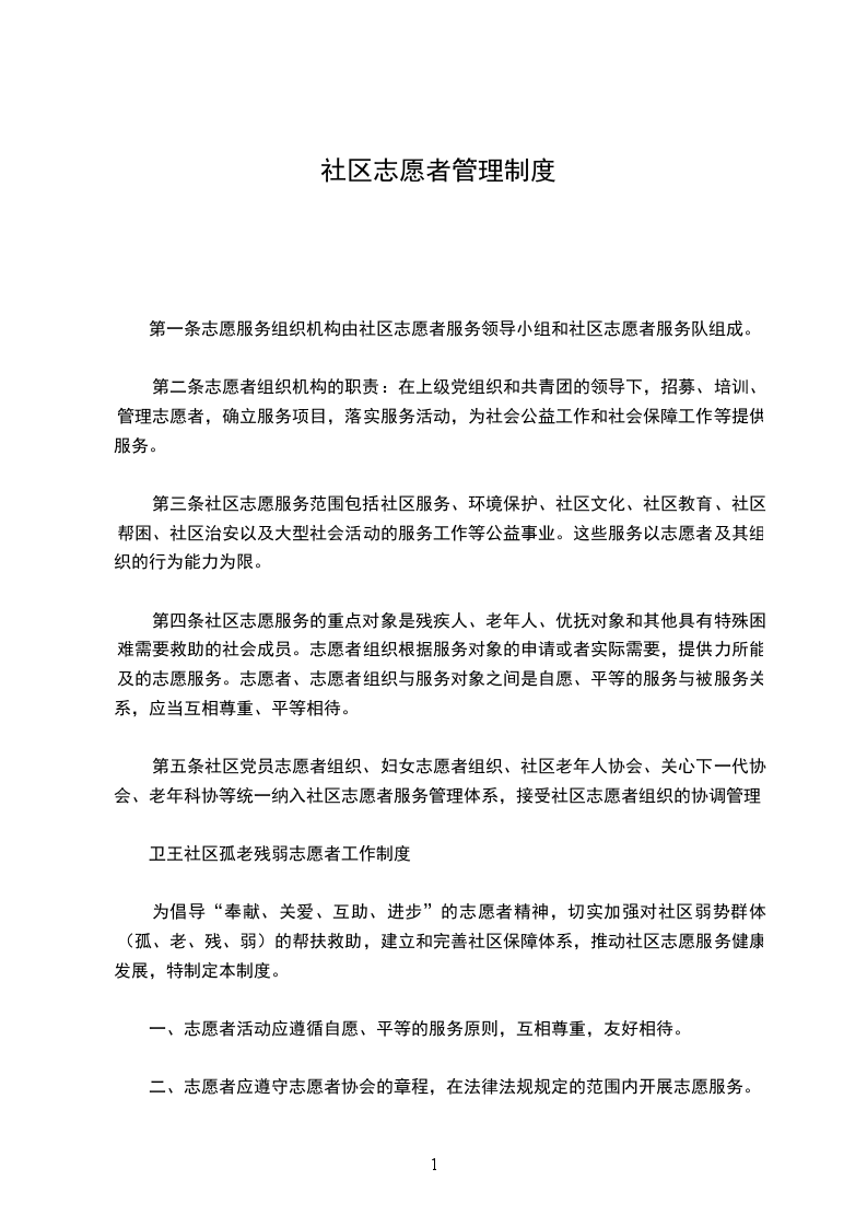 第一条志愿服务组织机构由社区志愿者服务领导小组和社区志愿者服务队组成。