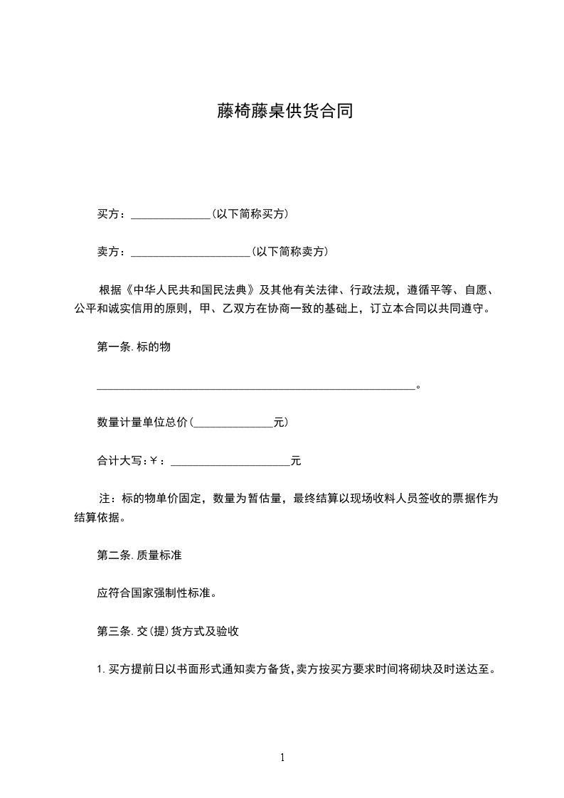 注:标的物单价固定,数量为暂估量,最终结算以现场收料人员签收的票据作为结算依据。