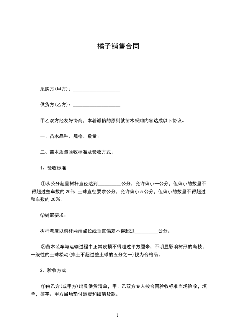 ①由乙方(或甲方)出具供货清单,甲、乙双方专人按合同验收标准当场验收,填单,签字。甲方当场垫付运费和结清货款。