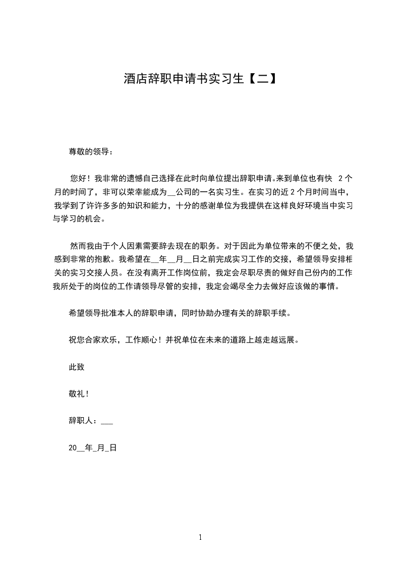 您好!我非常的遗憾自己选择在此时向单位提出辞职申请。来到单位也有快2个月的时间了,非可以荣幸能成为__公司的一名实习生。在实习的近2个月时间当中,我学到了许许多多的知识和能力,十分的感谢单位为我提供在这样良好环境当中实习与学习的机会。