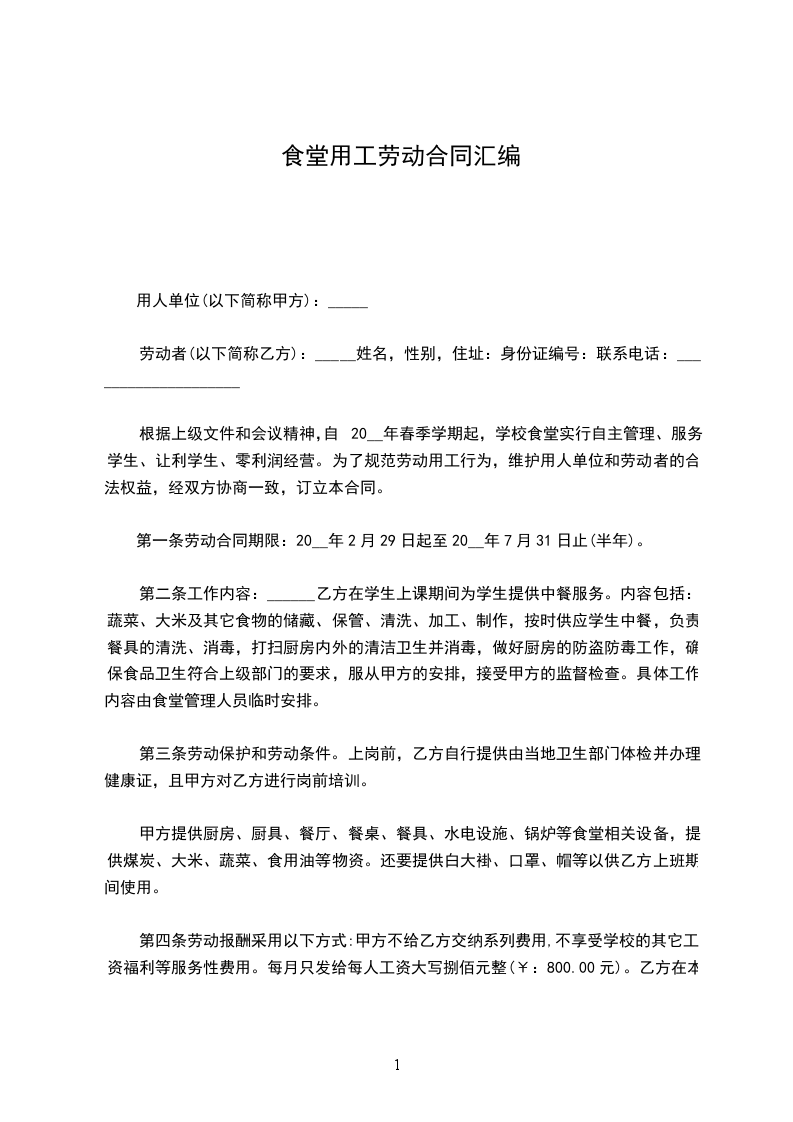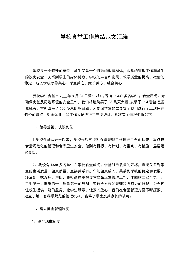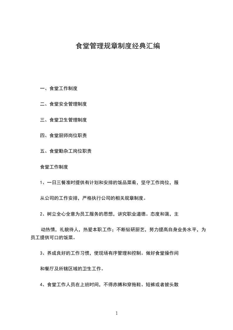 一、食堂工作制度