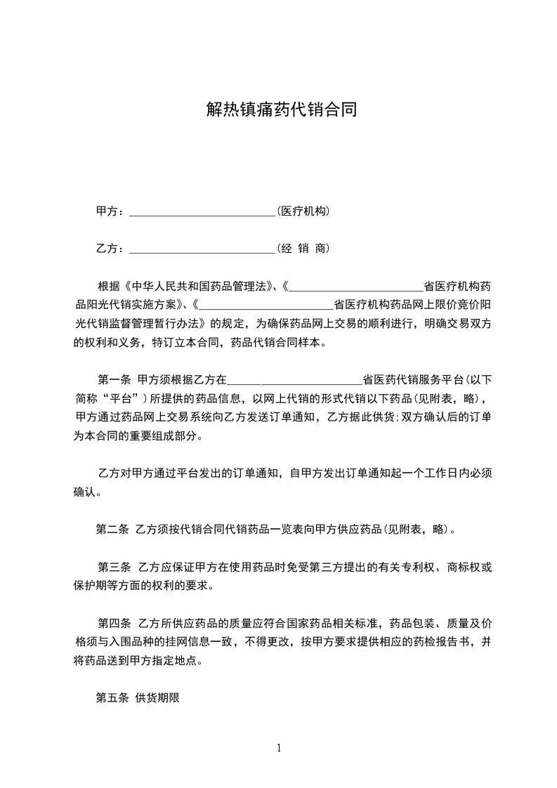 为规范我公司药品采购行为,保证药品及时供应,保障人民用药安全有效,根据《民法典》、《药品管理法》等法律法规,经供需双方友好协商达成如下购销协议: