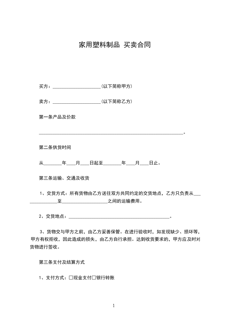 1、交货方式:所有货物由乙方送往双方共同约定的交货地点,乙方只负责从_______________至____________________之间的运输费用。