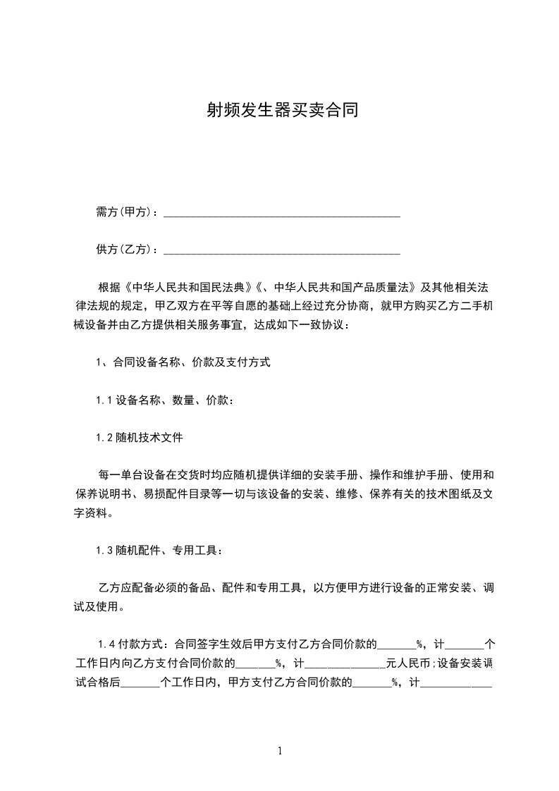 根据《中华人民共和国民法典》《、中华人民共和国产品质量法》及其他相关法律法规的规定,甲乙双方在平等自愿的基础上经过充分协商,就甲方购买乙方二手机械设备并由乙方提供相关服务事宜,达成如下一致协议: