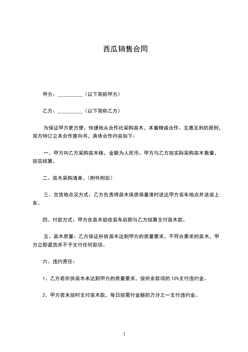 一、甲方向乙方采购苗木株,金额为人民币。甲方与乙方按实际采购苗木数量,按实结算。
