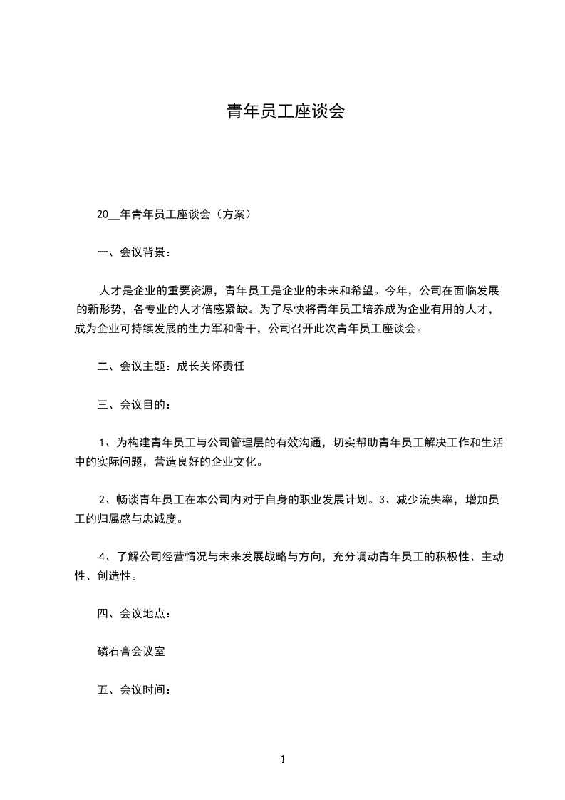 20__年青年员工座谈会(方案)