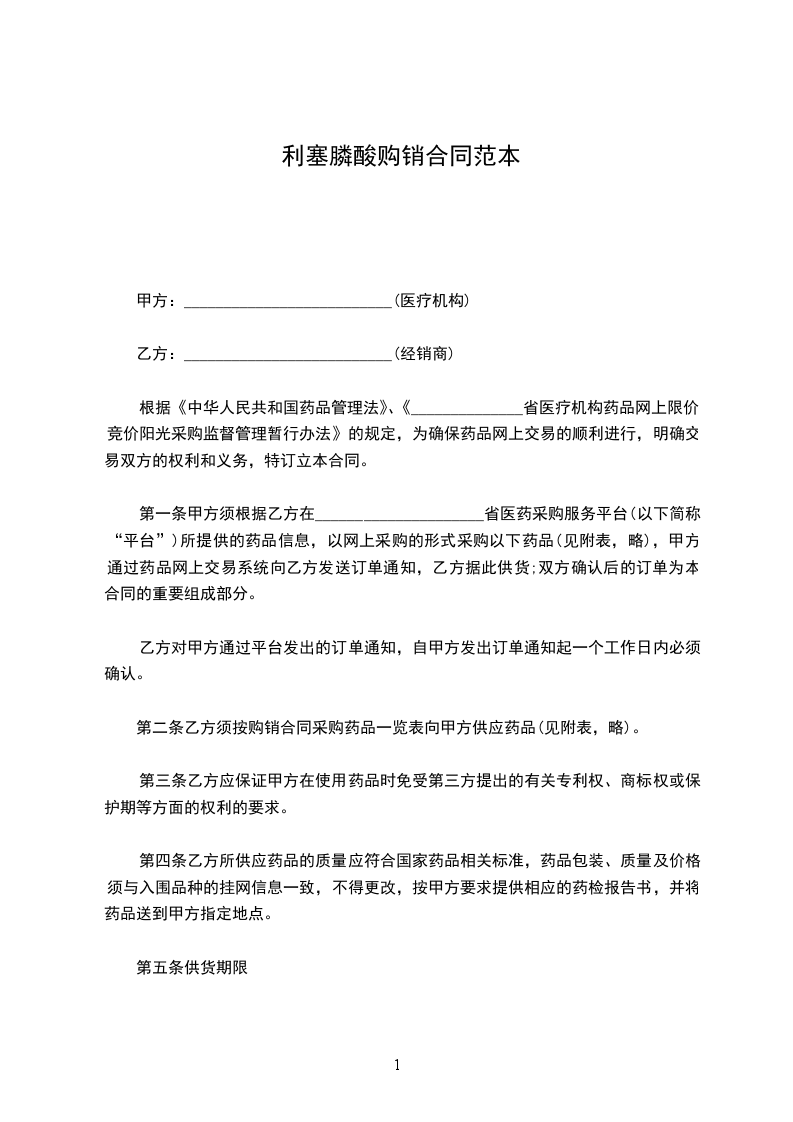 第一条甲方须根据乙方在_____________________省医药采购服务平台(以下简称“平台”)所提供的药品信息,以网上采购的形式采购以下药品(见附表,略),甲方通过药品网上交易系统向乙方发送订单通知,乙方据此供货;双方确认后的订单为本合同的重要组成部分。