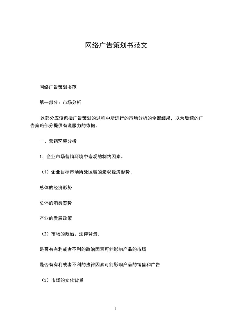 网络广告策划书范