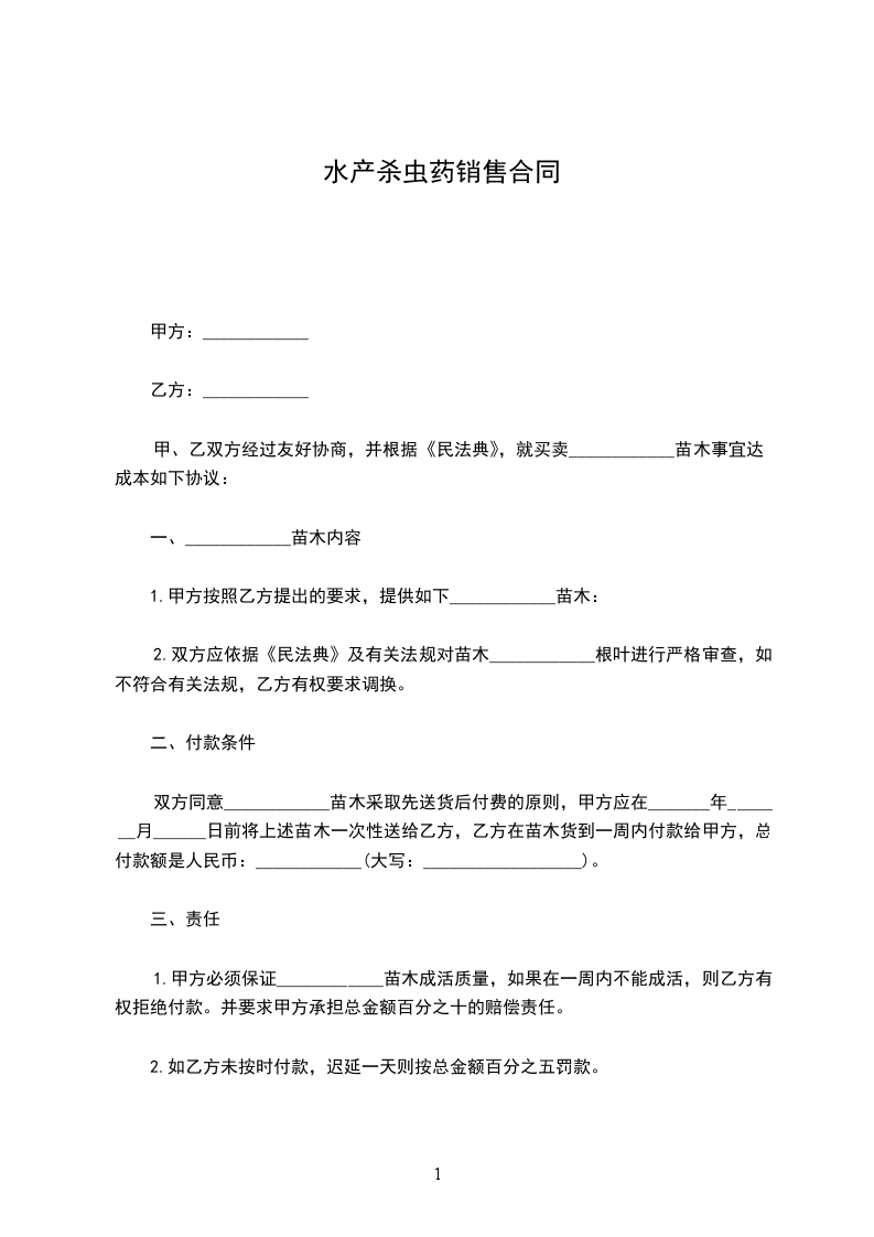 2.双方应依据《民法典》及有关法规对苗木____________根叶进行严格审查,如不符合有关法规,乙方有权要求调换。