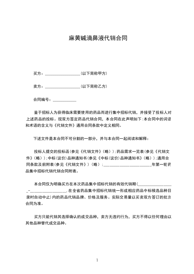 为了依法保护医疗机构(甲方)和药品生产、经营企业和配送企业(乙方)的合法利益,规范购销双方行为,遏制医药购销领域的不正之风,根据国家有关法律和河南省药品集中采购有关规定,经双方自愿协商,制定合同如下,以资双方共同遵守。